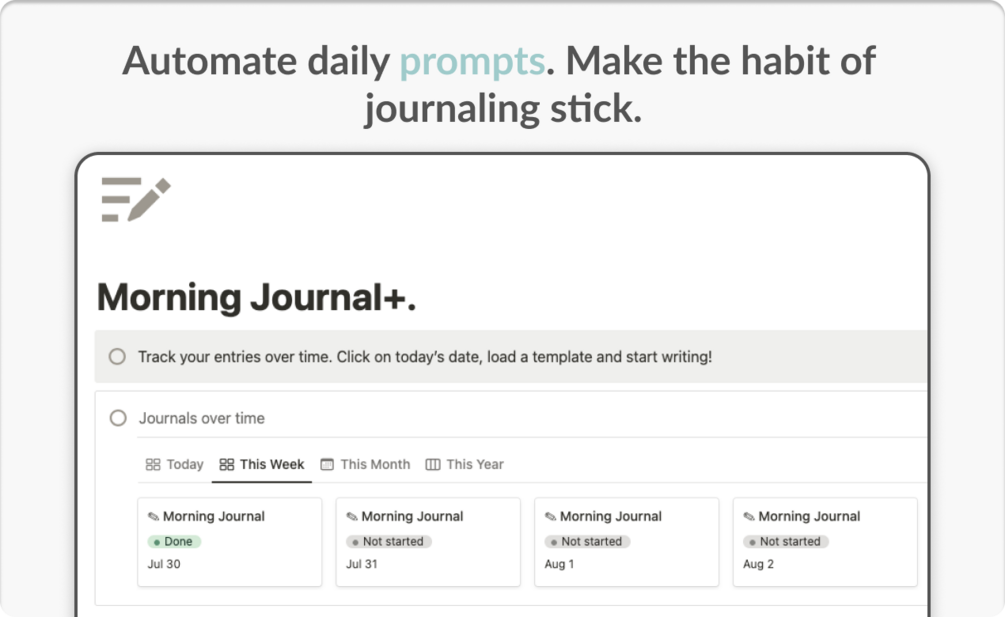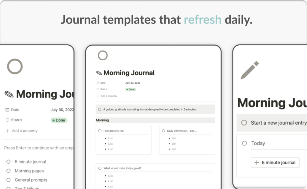 ✔️ Built-in templates for journal prompts including the 5-minute journal, The 5 Why's, Morning Pages and general prompts.