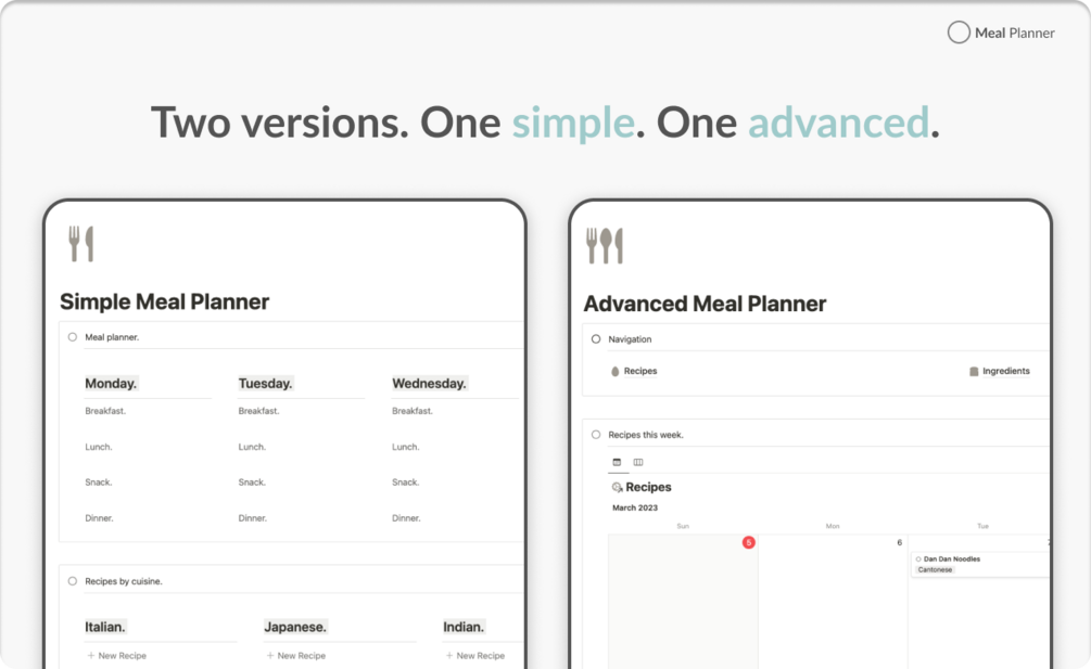 - A simple version and an advanced version to cater for all Notion users!