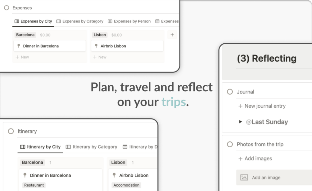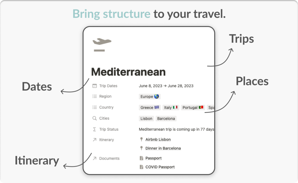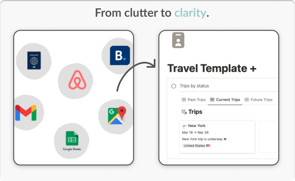 With the Notion Travel Dashboard, you can bring clarity to the chaos of travelling.