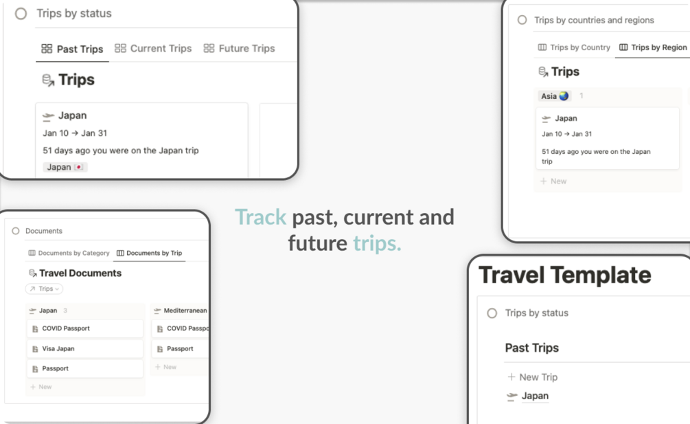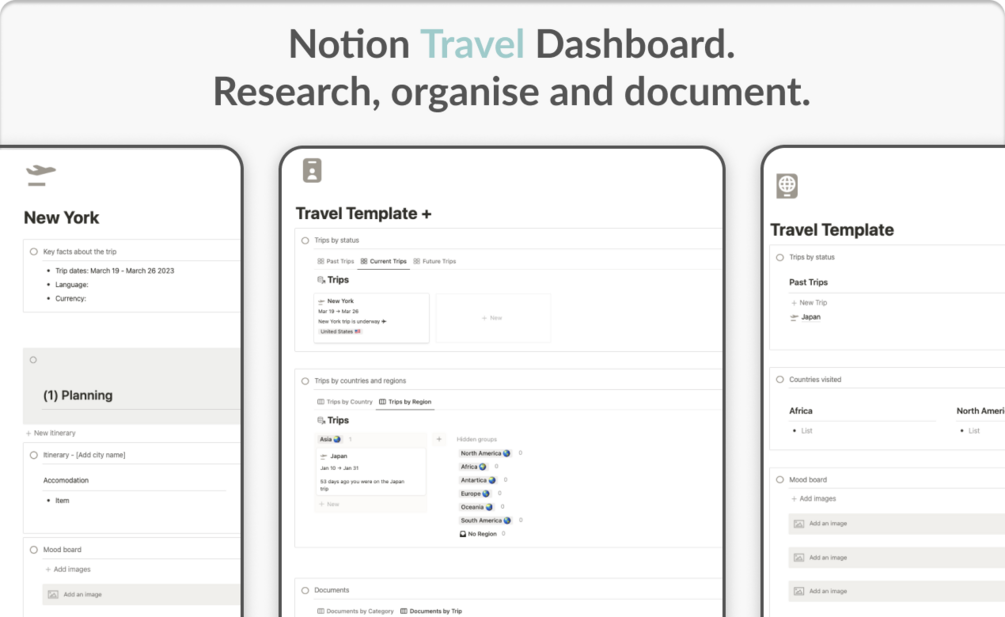 - Travel dashboard + - an advanced version for those familiar with Notion's features